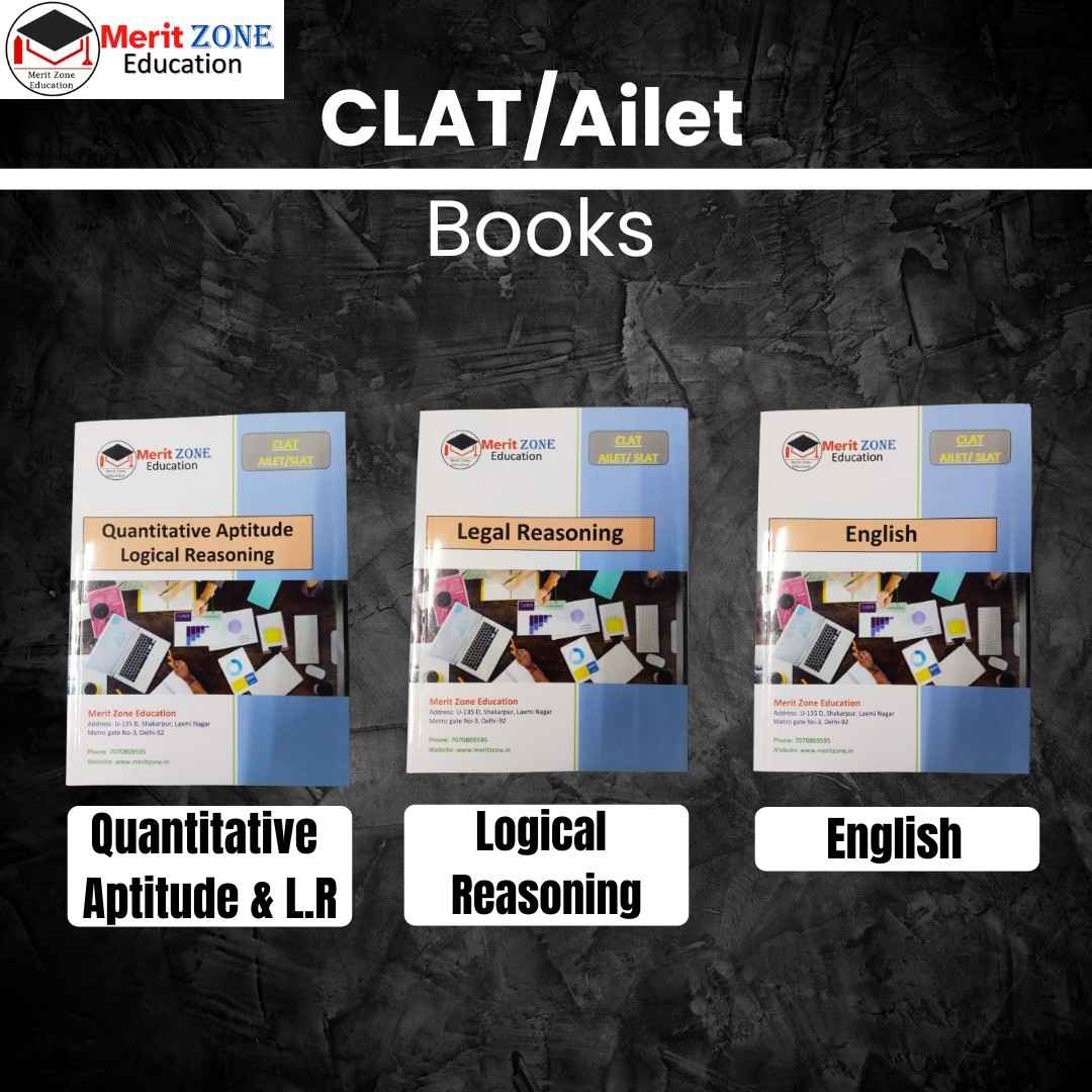 Prepare effectively for CLAT UG 2026 with MeritZone Education’s premium law entrance book series, built to strengthen the core CLAT testing areas — English Language, Legal Reasoning, and Quantitative Techniques/Logical Reasoning. Each book is structured according to the latest CLAT pattern, including passage-based questions and high-quality practice focused on boosting accuracy, speed, and rank.